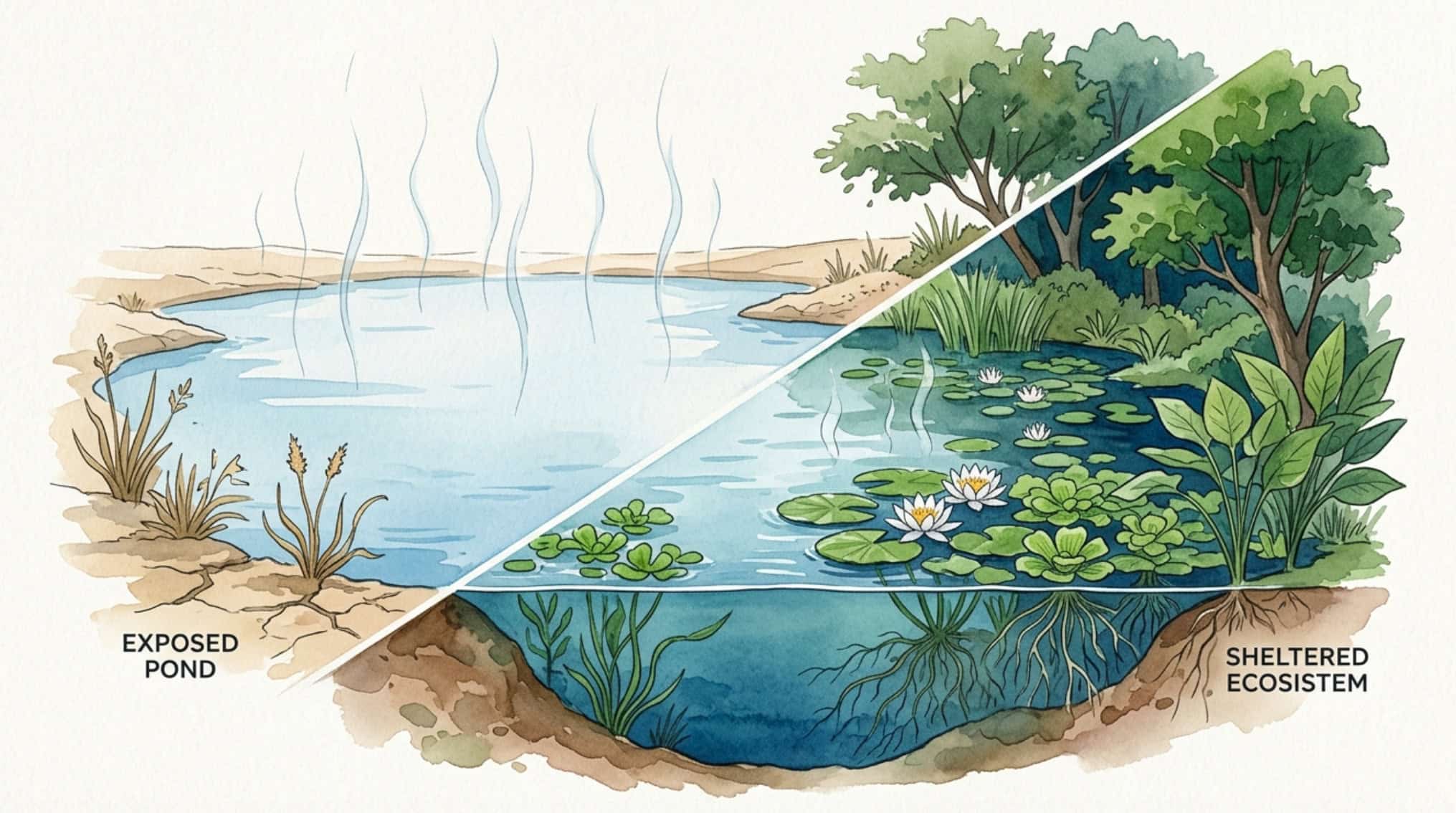 | Feature | Exposed Pond | Sheltered Ecosystem (Duckweed) |